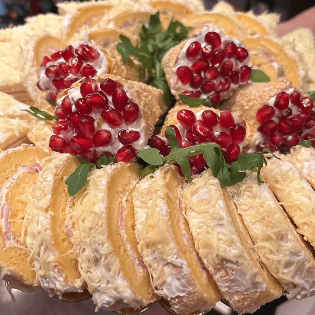 Domaća pečenica, suvi vrat, kulen, čajna, slanina, domaći kačkavalj, dimljeni kačkavalj, feta sit, čedar sir, mocarela, masline i čeri paradajz.